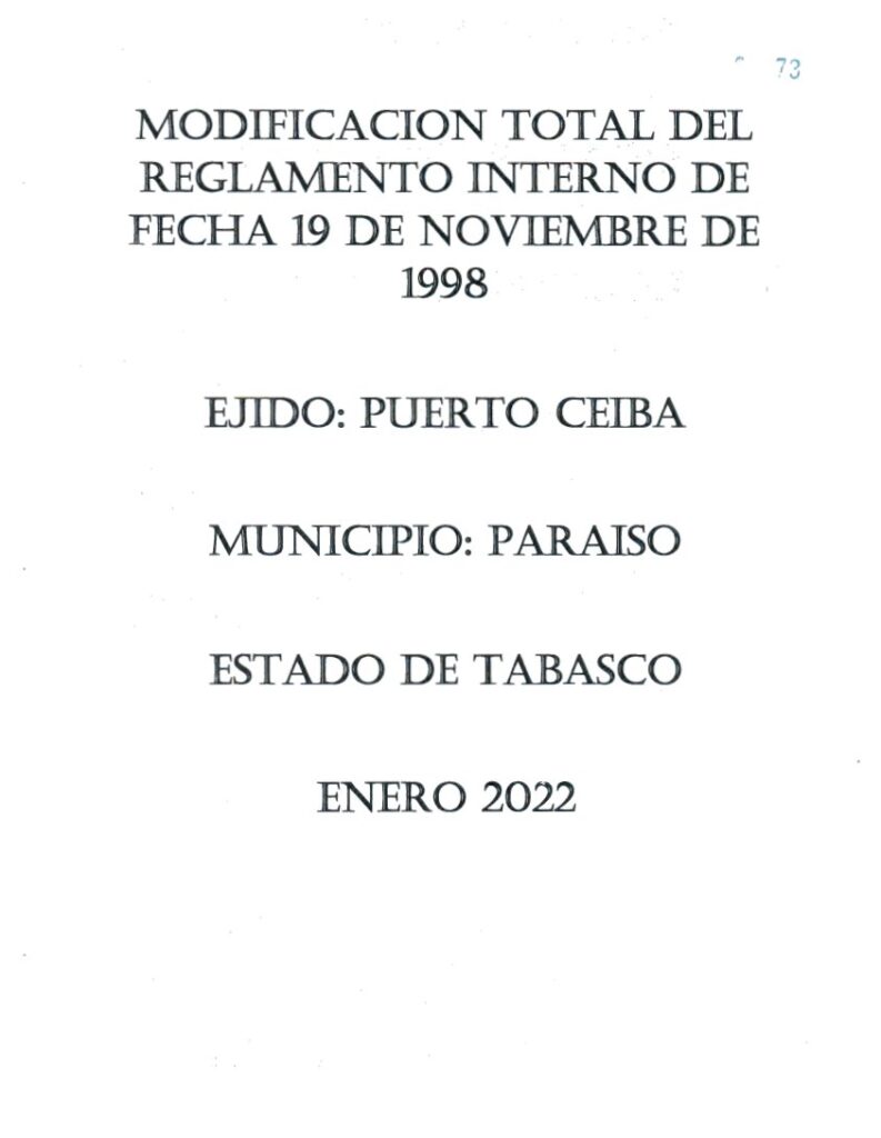 La administración del Ejido Puerto Ceiba del periodo 2026-2028, hace público el contenido del reglamento bajo el cual se rige su administración. Se invita a los integrantes del ejido a consultarlo, para ello pueden acercarse a las autoridades administrativas para obtenerlo en su totalidad.